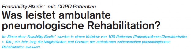 Im Sinne einer Feasibility-Studie wurden in einem Kollektiv von 100 Patienten ein Jahr lang die Möglichkeiten und Grenzen der ambulanten wohnortnahen pneumologischen Rehabilitation evaluiert