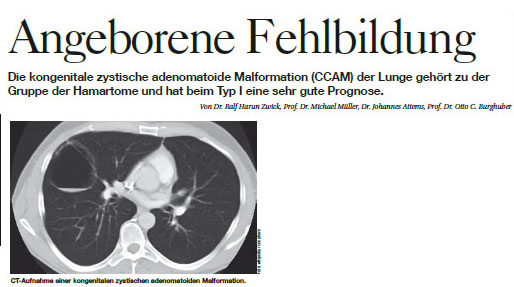 Dr Ralf Harun Zwick berichtet in diesem Artikel in der Ärztezeitung über die Diagnose einer seltenen angeborenen Lungenerkrankung (CCAM)